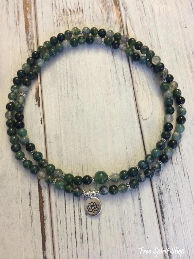 108 Natural Green Moss Agate Stone Mala Prayer Beads