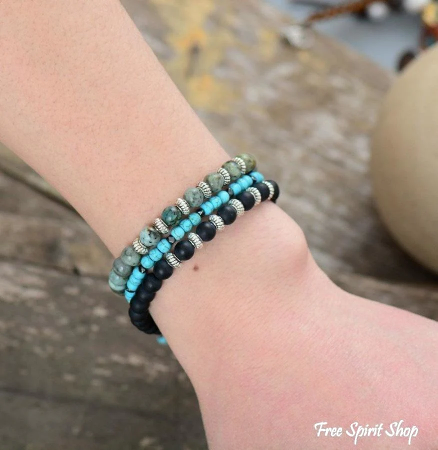 Handmade Natural Black Onyx Gemstone Adjustable Bracelet