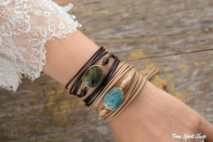 Handmade Natural Labradorite Gemstone Wrap Bracelet