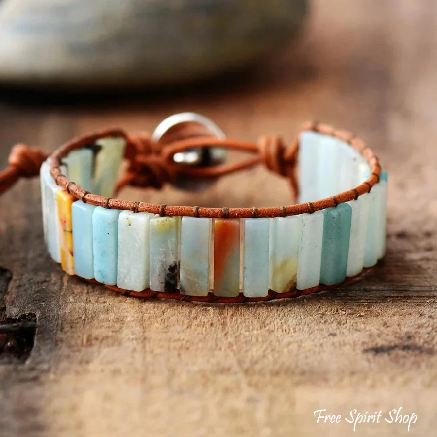 Natural Amazonite Stone & Leather Tree Of Life Bracelet