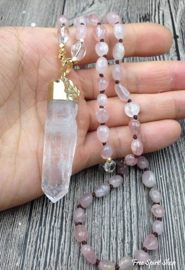 Natural Clear Quartz & Rose Quartz Gemstone Necklace