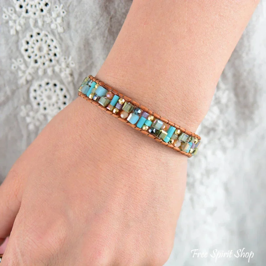 Natural Crystal & Leather Tree of Life Wrap Bracelet