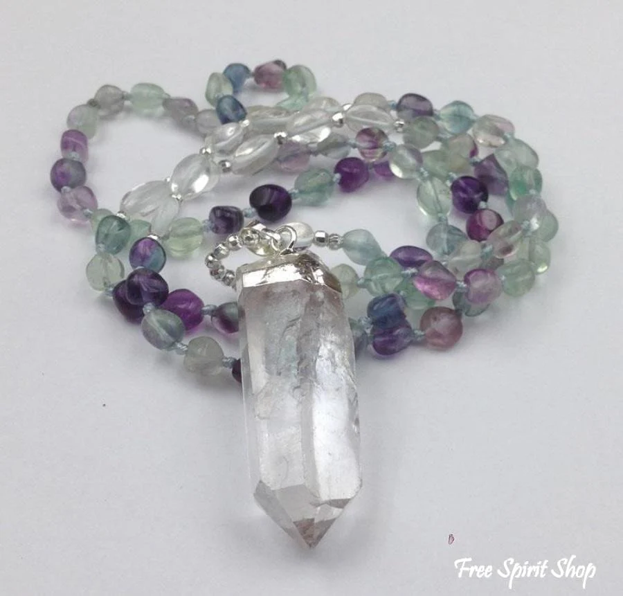 Natural Fluorite & Clear Quartz Gemstone Necklace