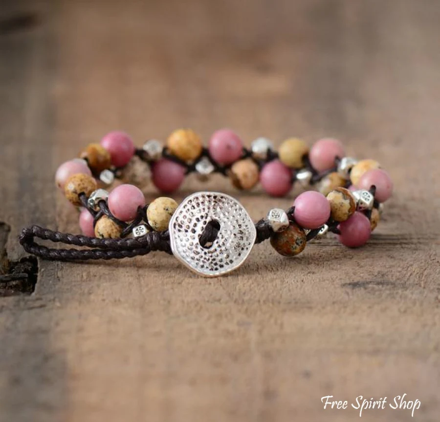 Natural Jasper & Rhodonite Gemstone Wrap Bracelet