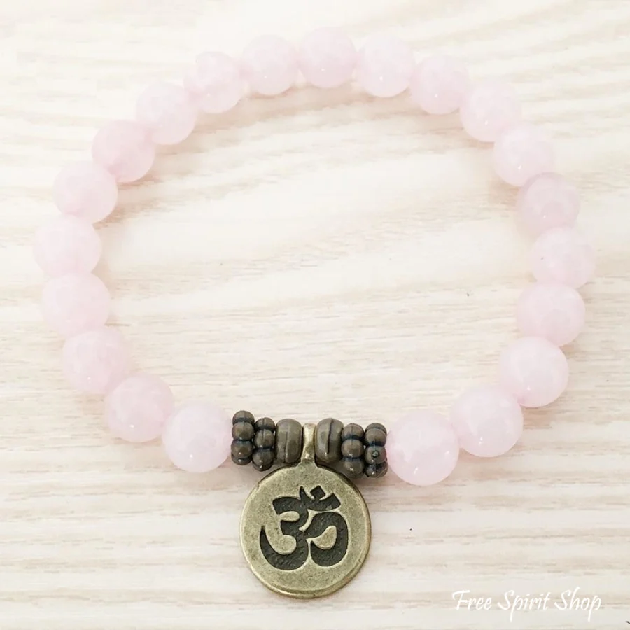 This splendid mala bracelet is carefully handmade with natural Rose Quartz beads also known as LOVE stone and a charm. Length is about 19 cm. Choose your charm: Ohm, Buddha or Lotus symbol.